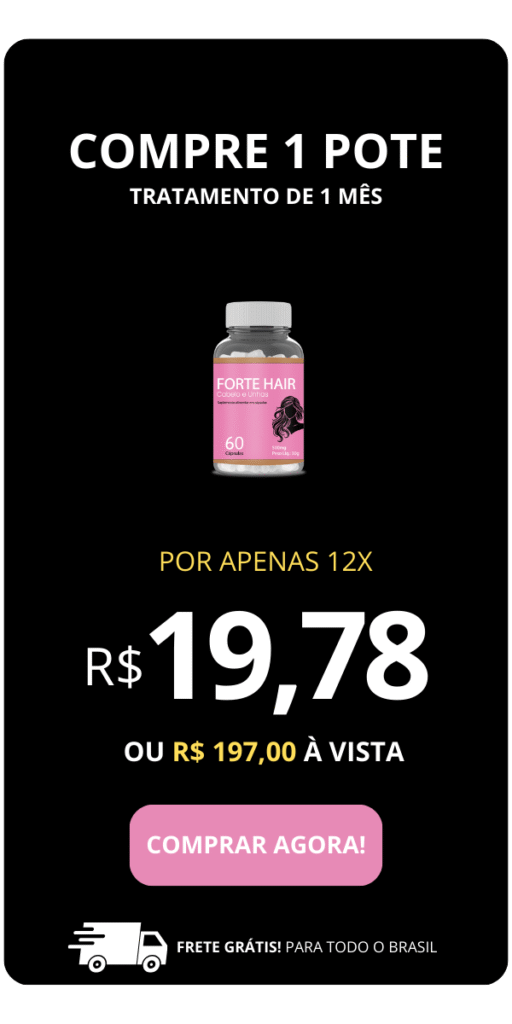 Forte Hair é um suplemento avançado em cápsulas desenvolvido com Biotina e nutrientes essenciais que atuam de dentro para fora, fortalecendo cabelos e unhas, combatendo a queda capilar e estimulando o crescimento saudável.